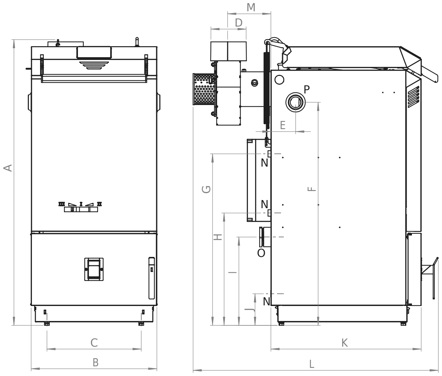 Im Gegensatz zu anderen Heizkesseln lässt sich die Verteilung der in den Brennstoff eintretenden Luft (Vortrocknungsluft über der Brennstoffschicht) bei BLAZE HARMONY Heizkesseln leicht steuern. Der Kessel kann daher auch an verschiedene Brennstoffe angepasst werden. Dies ermöglicht eine effiziente Verbrennung von leicht brennbaren Brennstoffen (Holzabfälle, Hackschnitzel, kleine Briketts) und von schwer brennbaren Brennstoffen (große Holzscheite, nasses Holz).