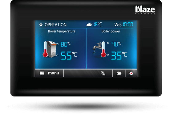 Fernsteuerungspanel mit der Raumthermostat-Funktion ecoSTER TOUCH ermöglicht die Bedienung und Parameteränderung des Kessels von der Stelle, wo das Bedienungspanel installiert ist, z. B. aus dem Wohnzimmer.